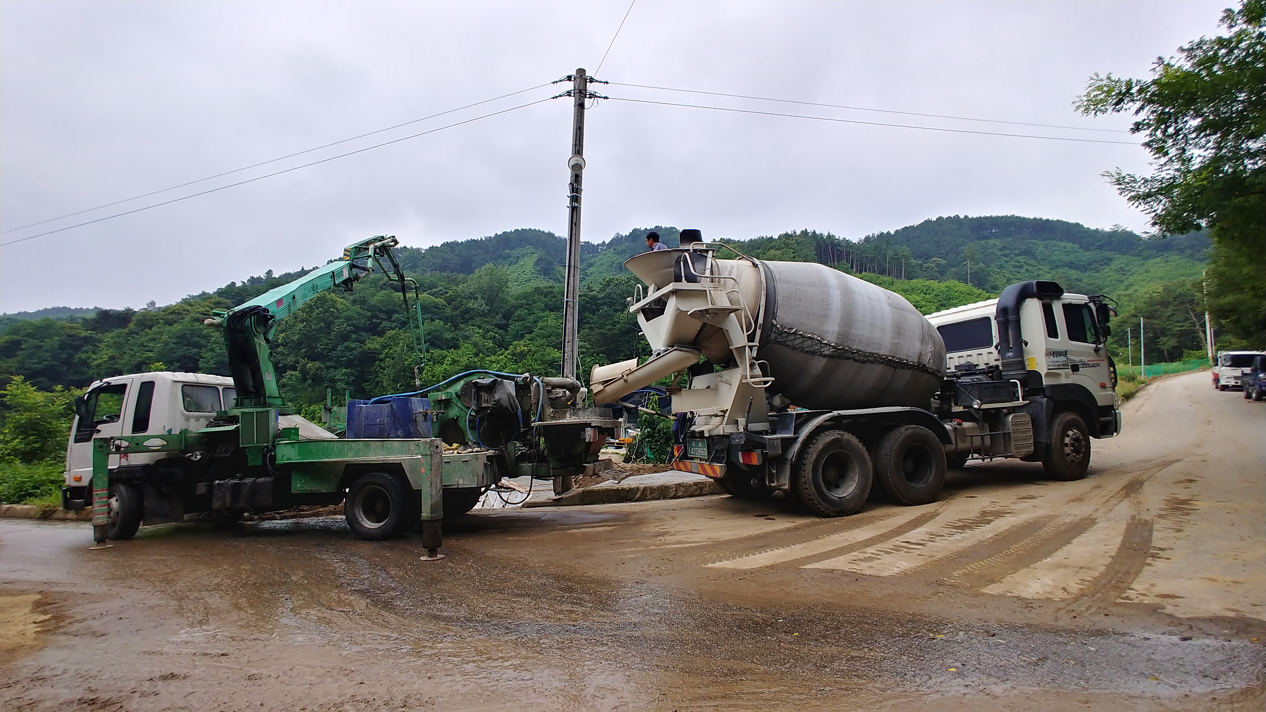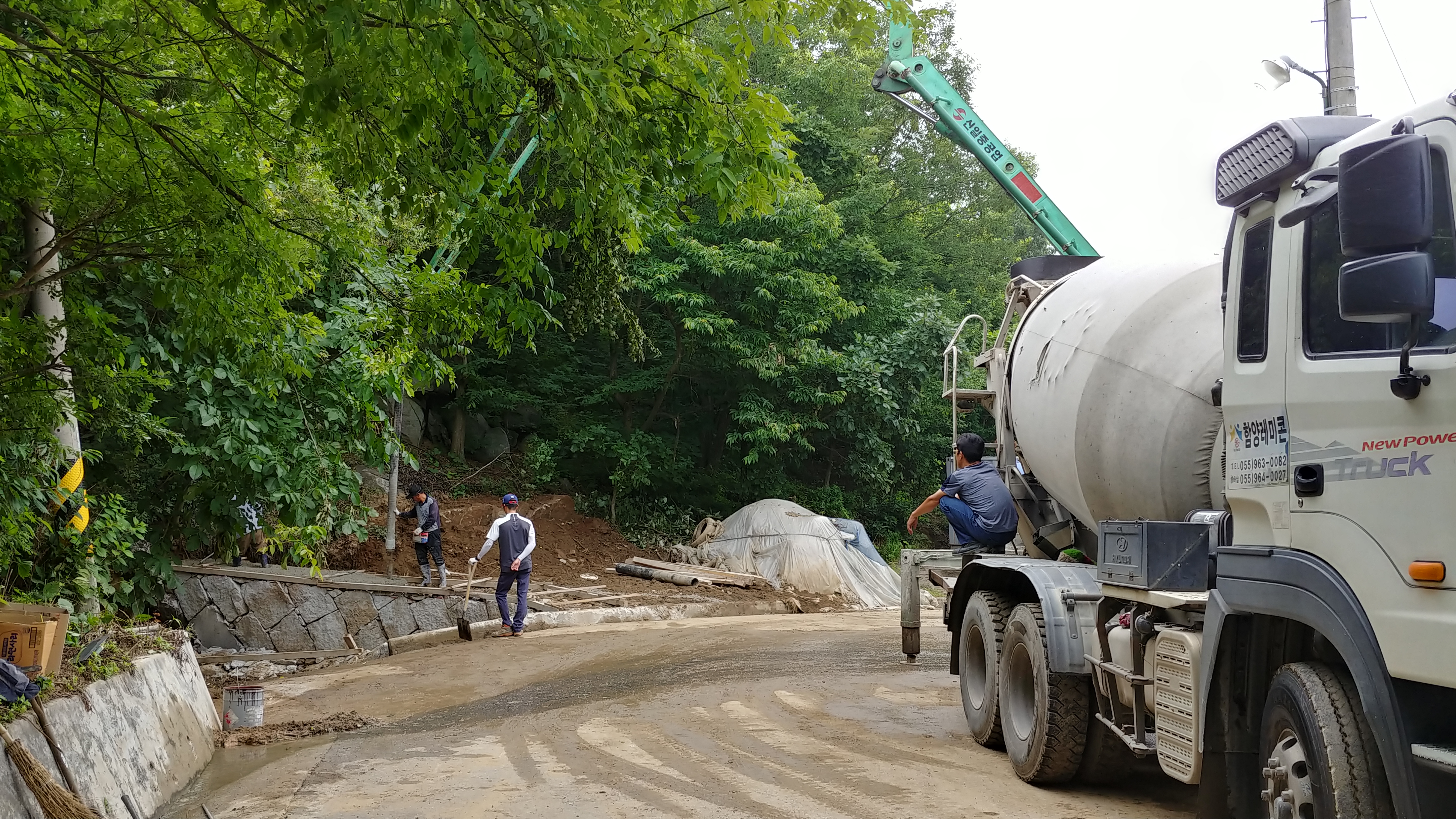 다시 공사 재개로 18일에는 마무리 공사로 레미콘 작업을 마쳤다.