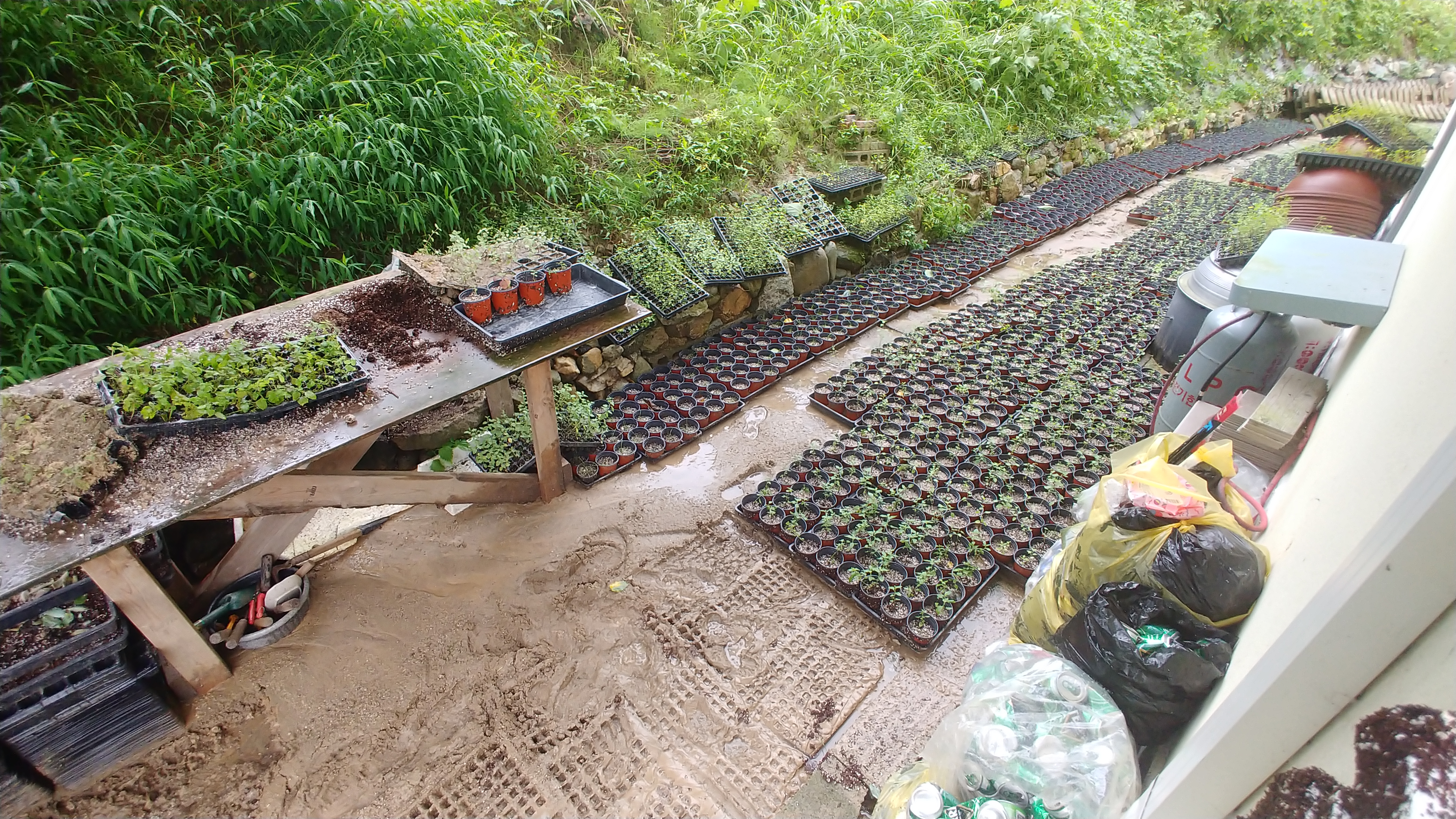 하우스에 자란 잡초도 뽑아야 하고, 허브랑 다육이랑 아이들 병충에 걸리지 않도록 농약도 쳐야하고, 건강하게 자라도록 영양제도 줘야하고 그리고 먹을거리로 심은 복수박도 관리해야 합니다.