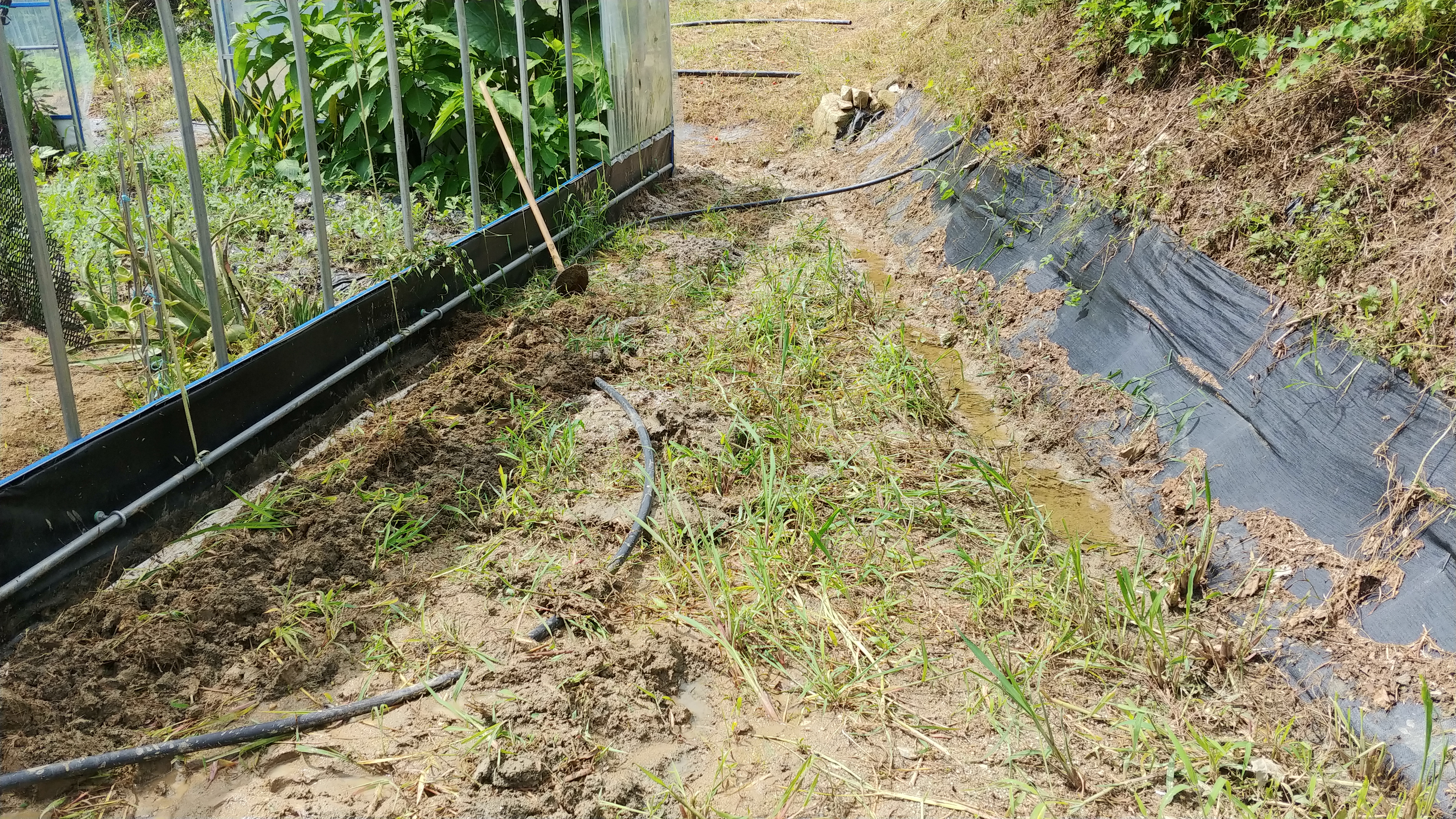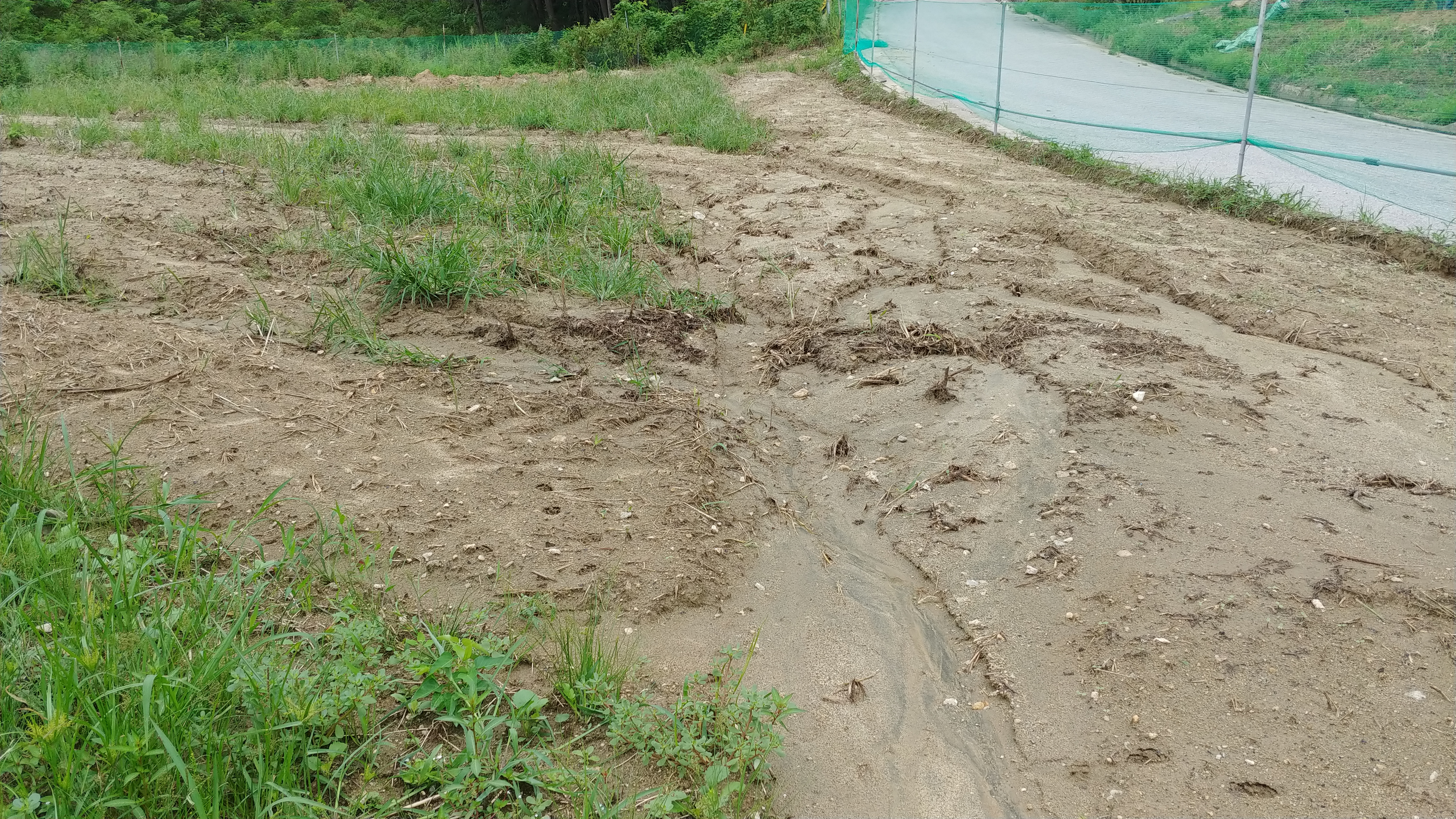 순식간에 쏟아진 많은 비는 집 뒤 밭에서 흘러내린 토사로 집 뒷마당이 엉망이 돼 버렸습니다.