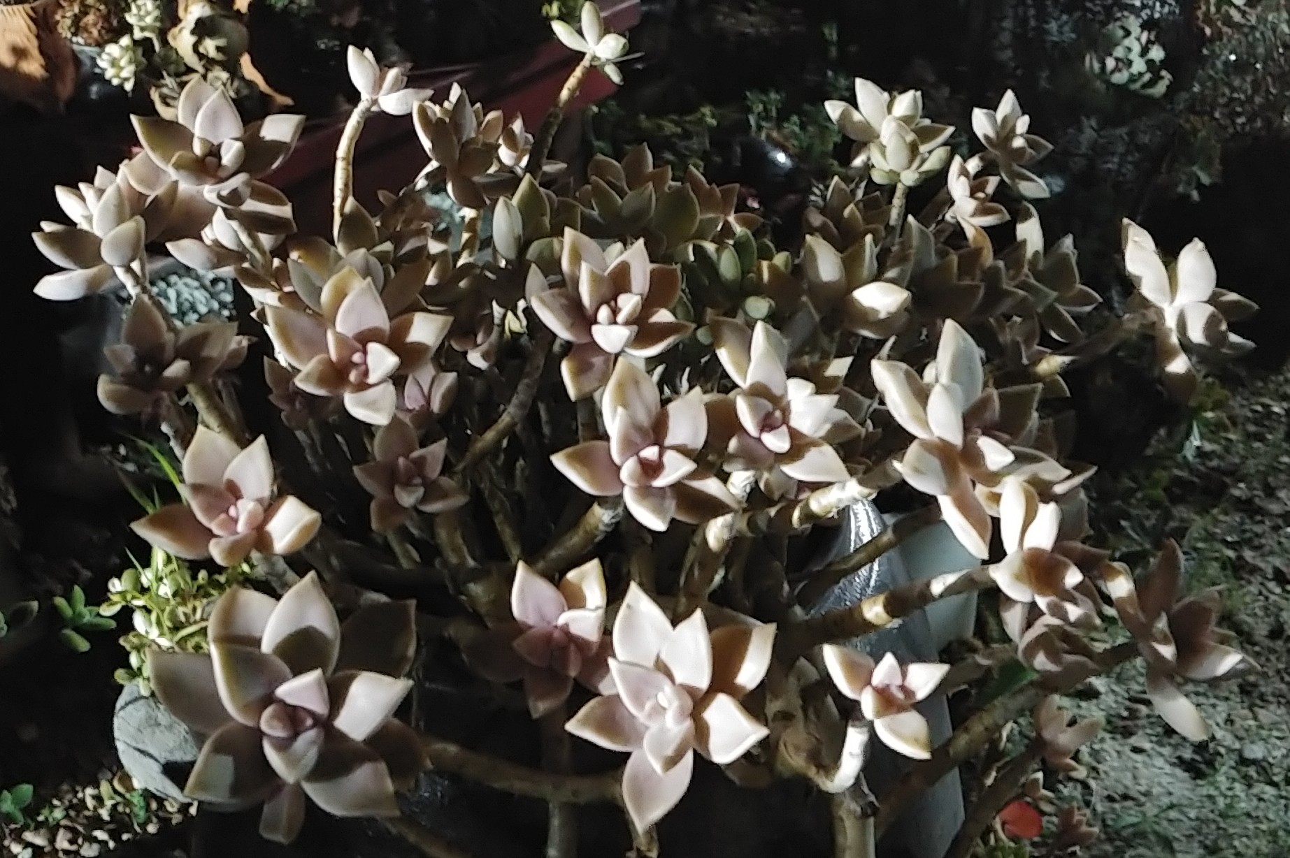 밤 불빛에 보는 다육작품, 아름답지 아니한가요?