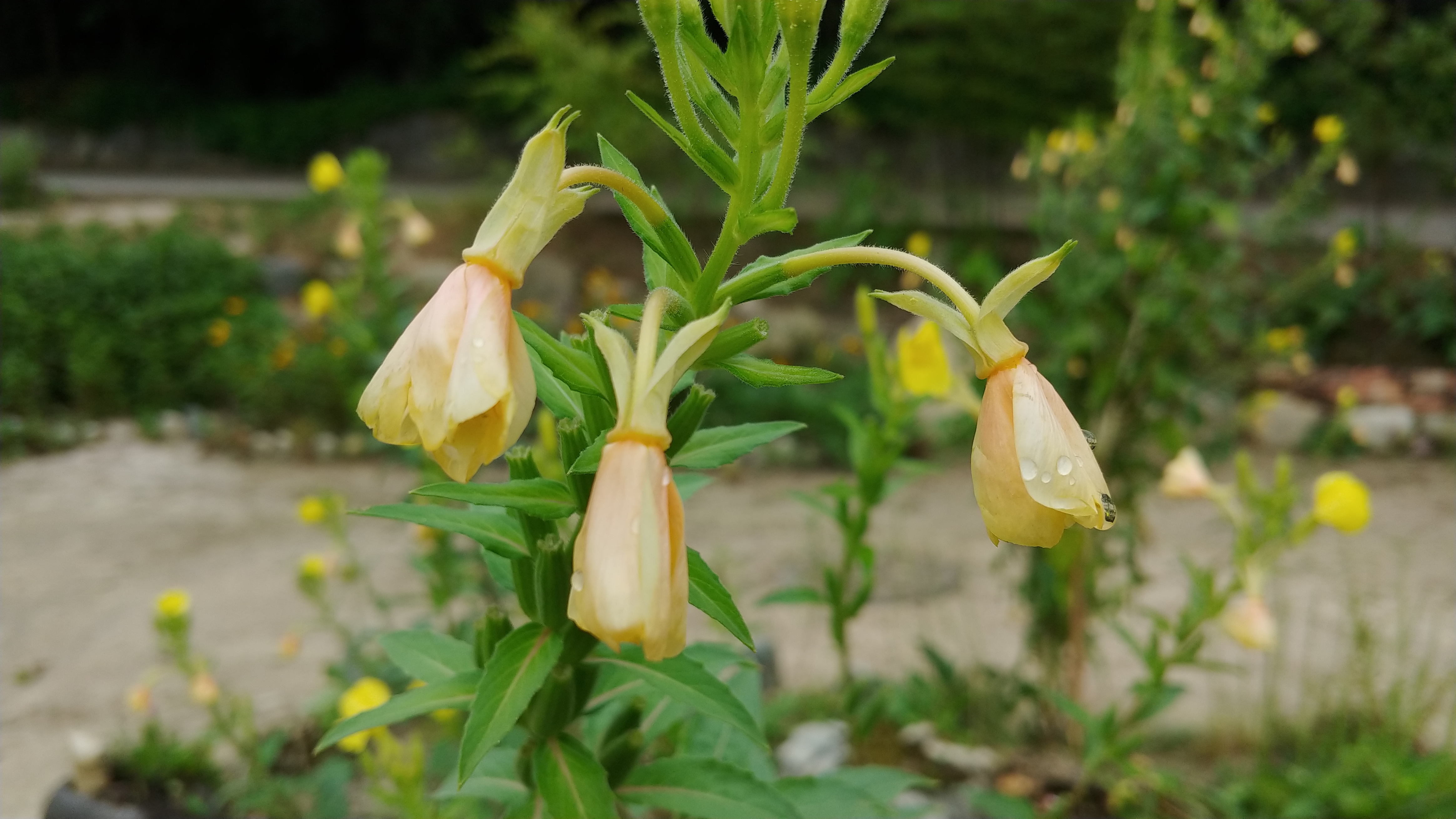 달맞이꽃은 키가 큰 탓에 강풍이 불면 쓰러지기 쉬운데, 죽풍원 달맞이꽃도 지난 태풍이 반쯤 쓰러져 꽃을 피웠다.