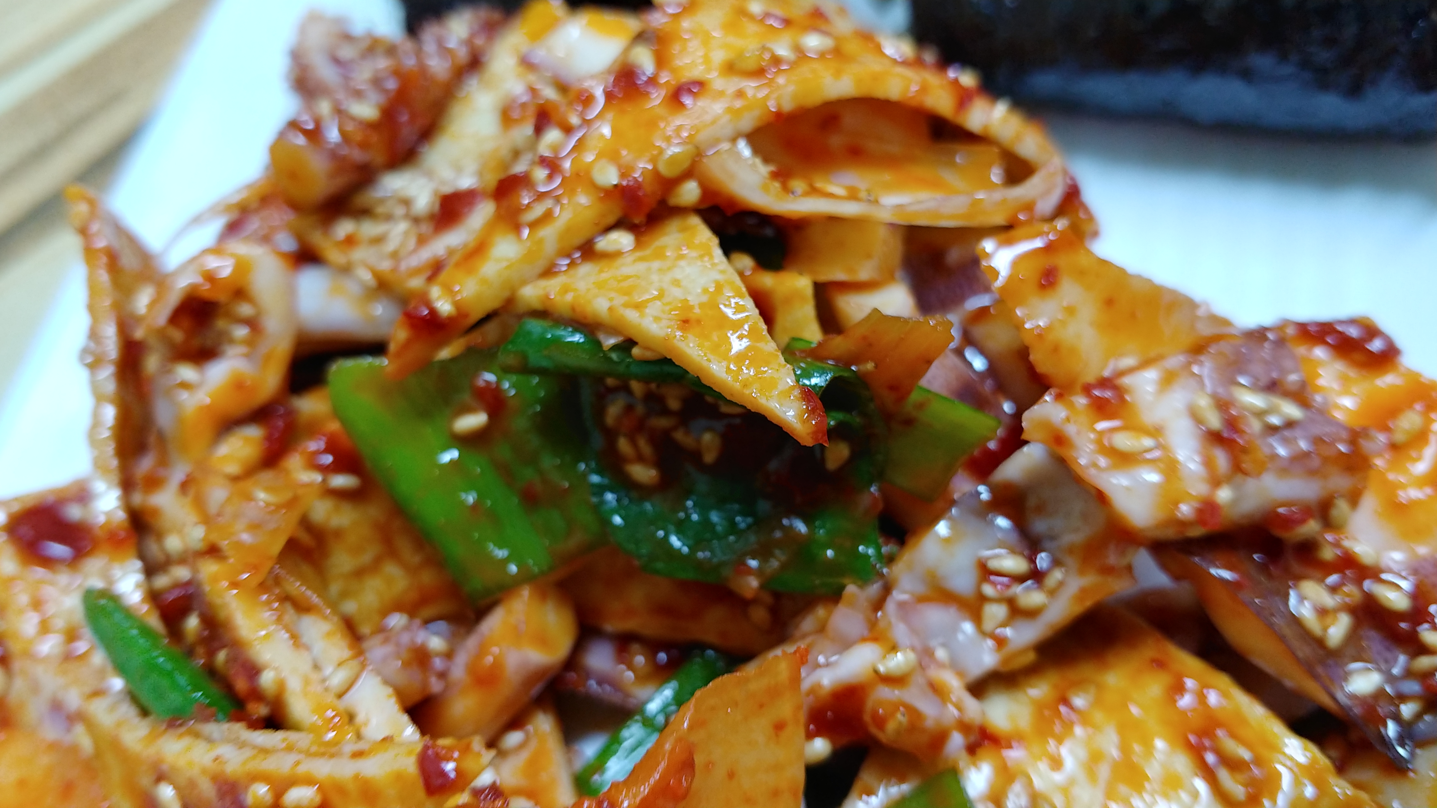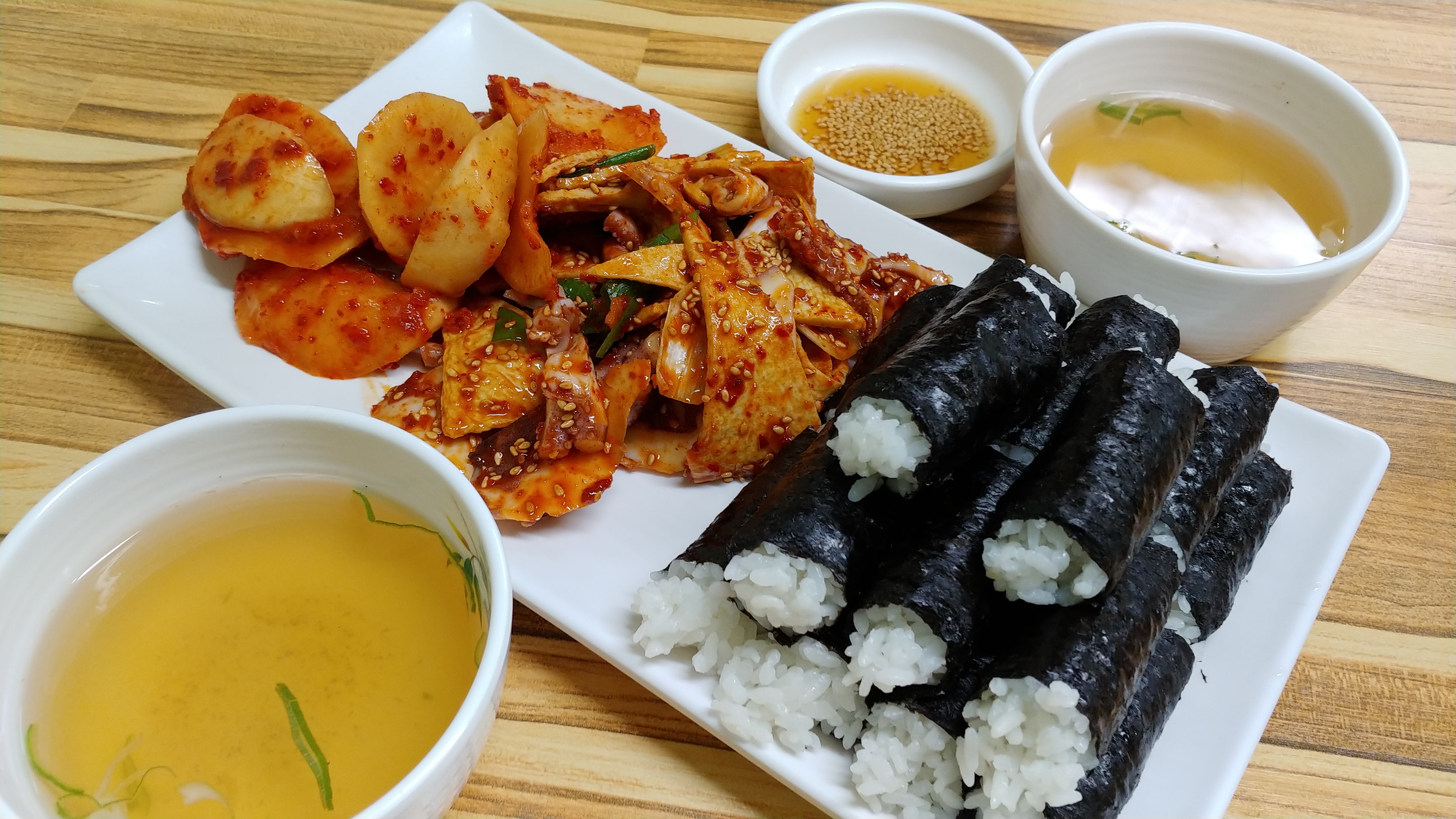새콤한 무김치와 쫄깃한 어묵과 오징어무침 그리고 시래기 국은 아니지만 깔끔한 국물 맛에 입맛은 최고에 달했다.