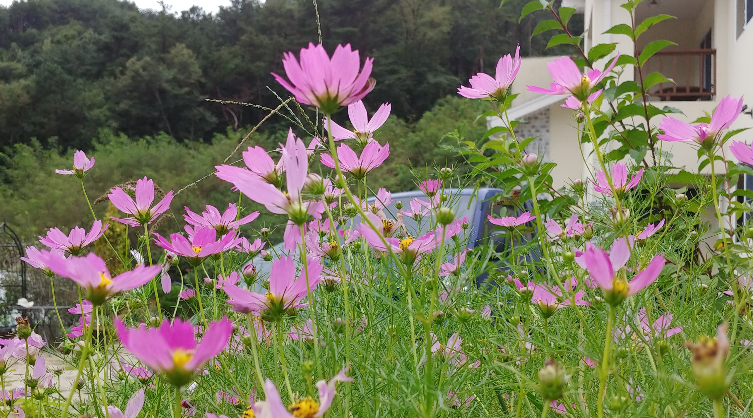 죽풍원에도 코스모스가 화려한 모습으로 꽃을 활짝 피웠다.