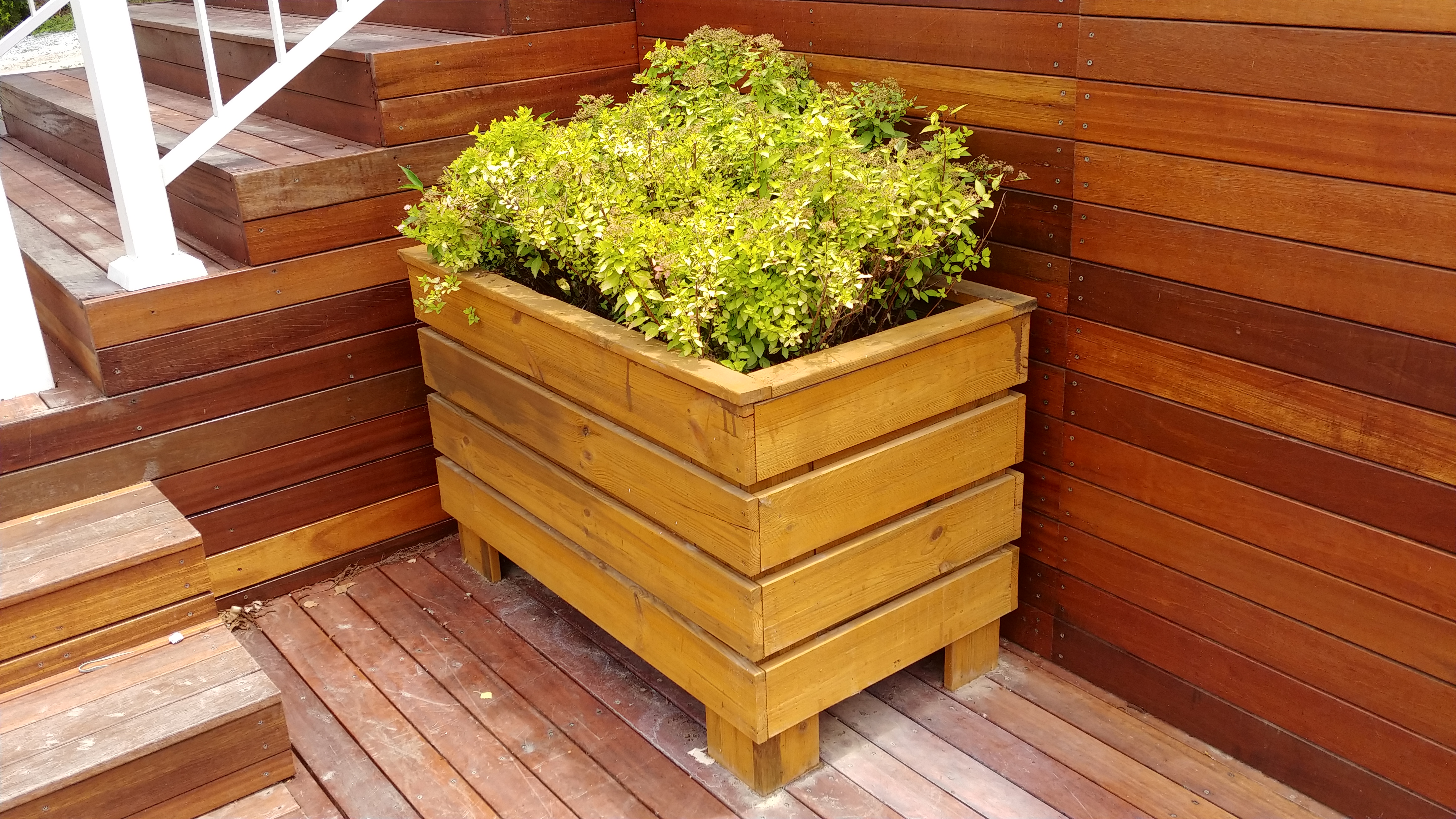 원목을 사용한 데크와 목재 화분도 정원 가꾸기에 있어 빼 놓을 수 없는 구성품이 아닌가 싶다.