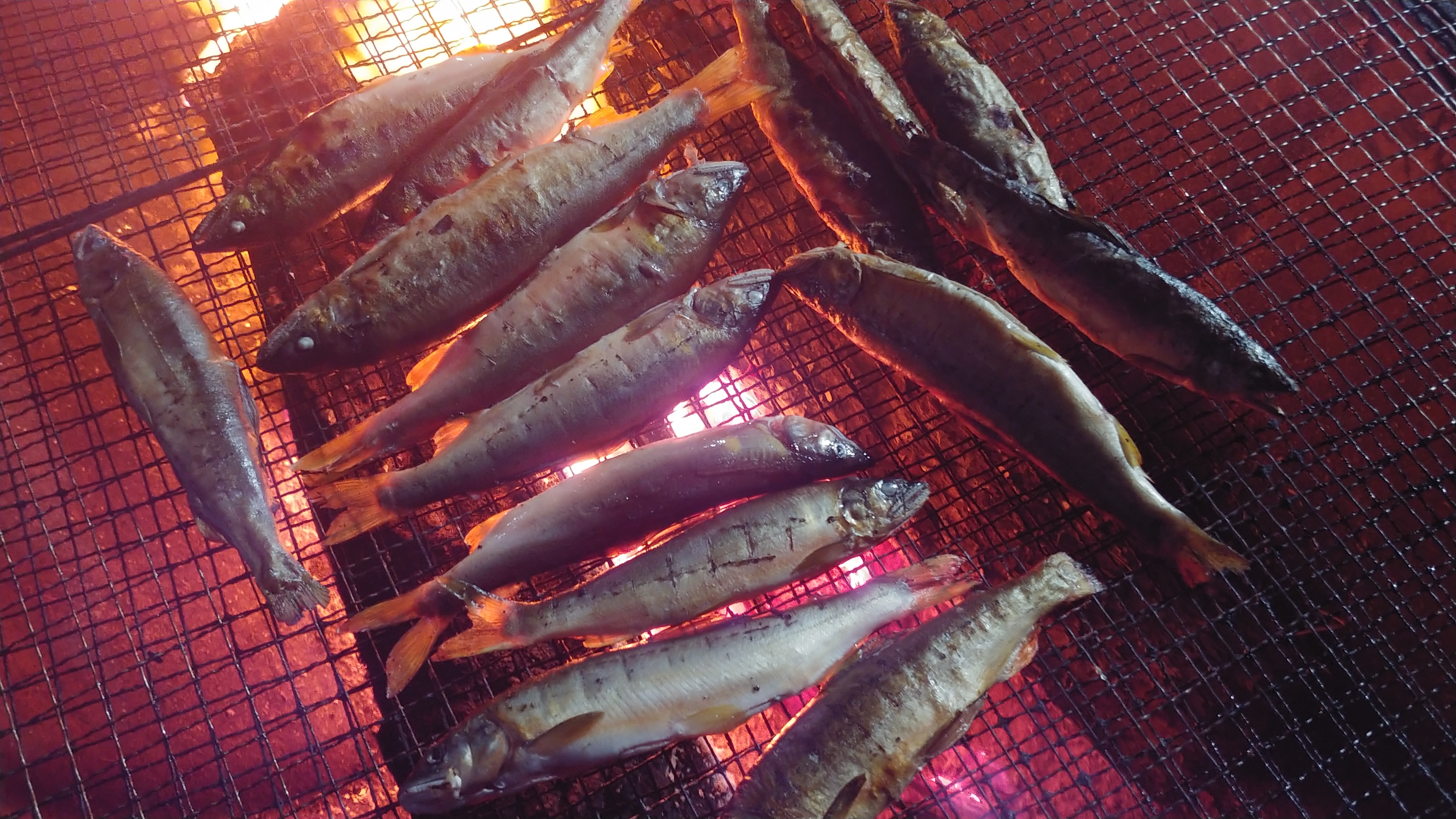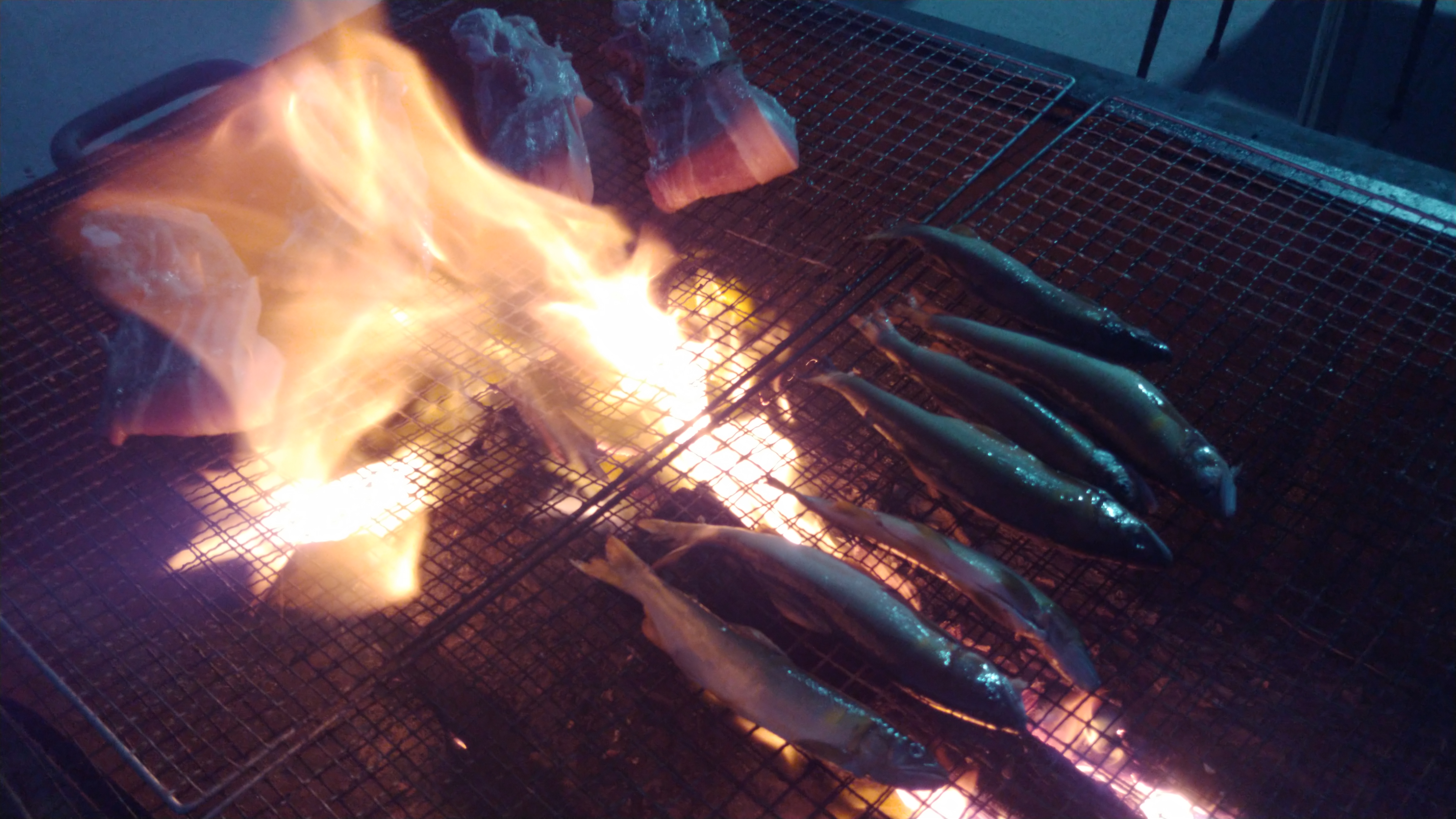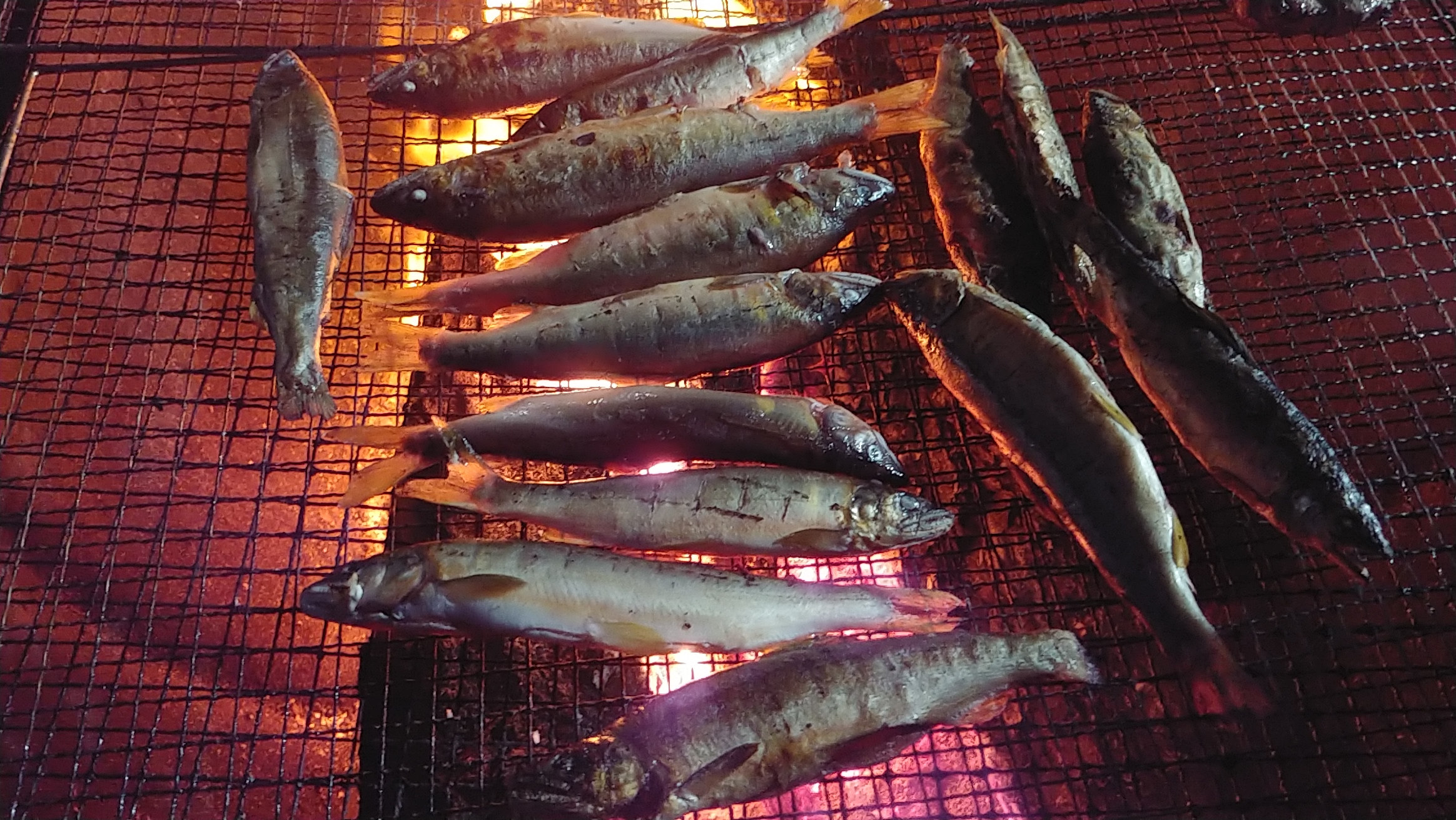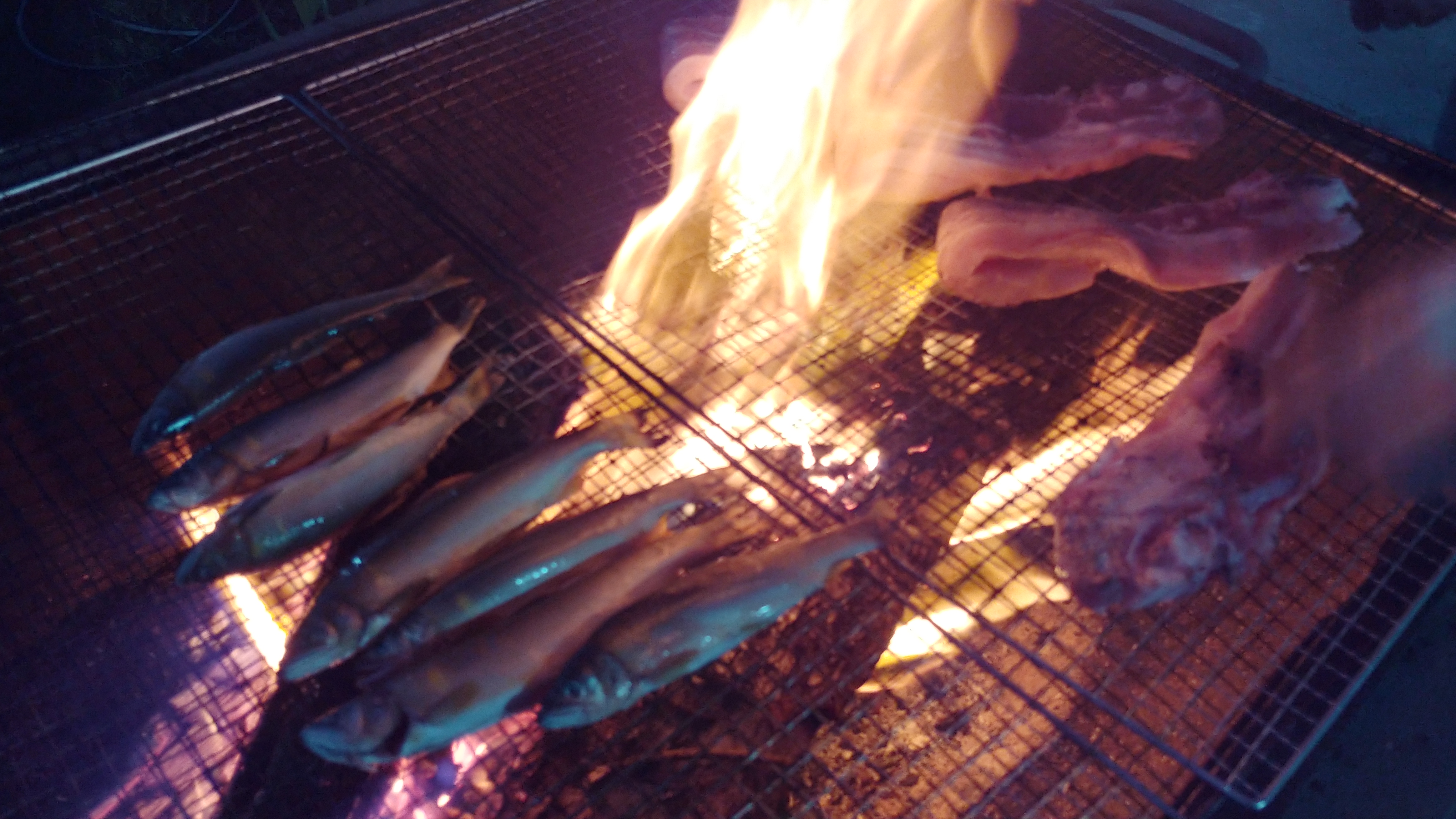 여름철에 잡아 보관한 수박향 은어와 삼겹살의 만남입니다.