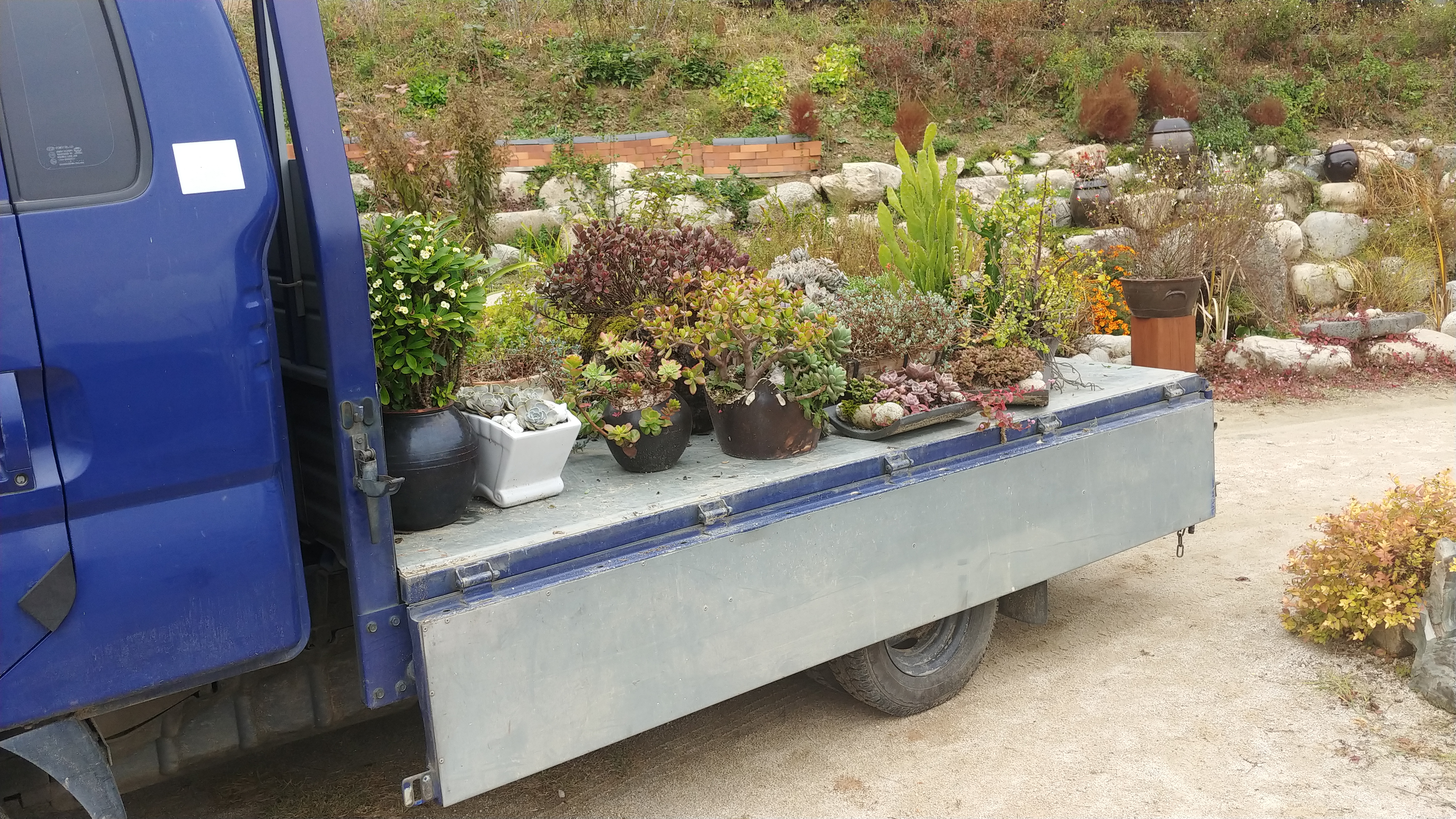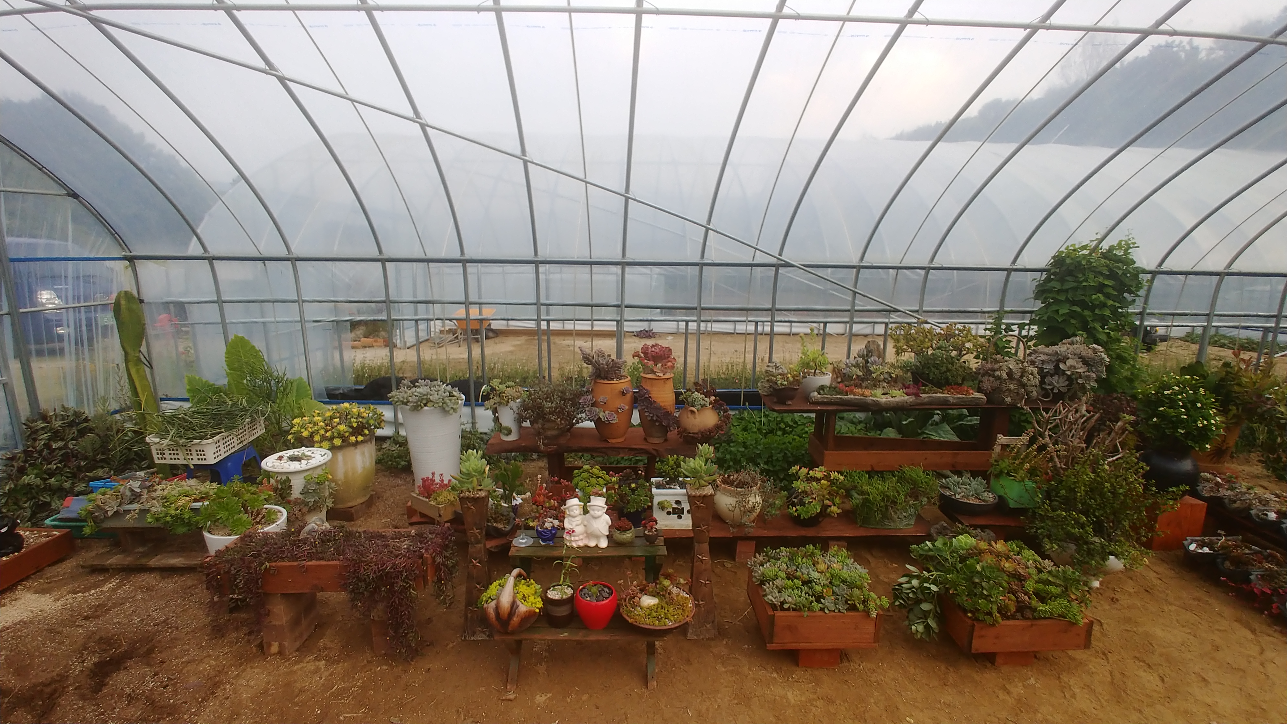 비온 뒤는 기온이 많이 떨어질 것으로 예상되기 때문에 지난 봄부터 야외에서 키우던 다육식물들은 모두 하우스 안으로 옮겨야만 합니다.