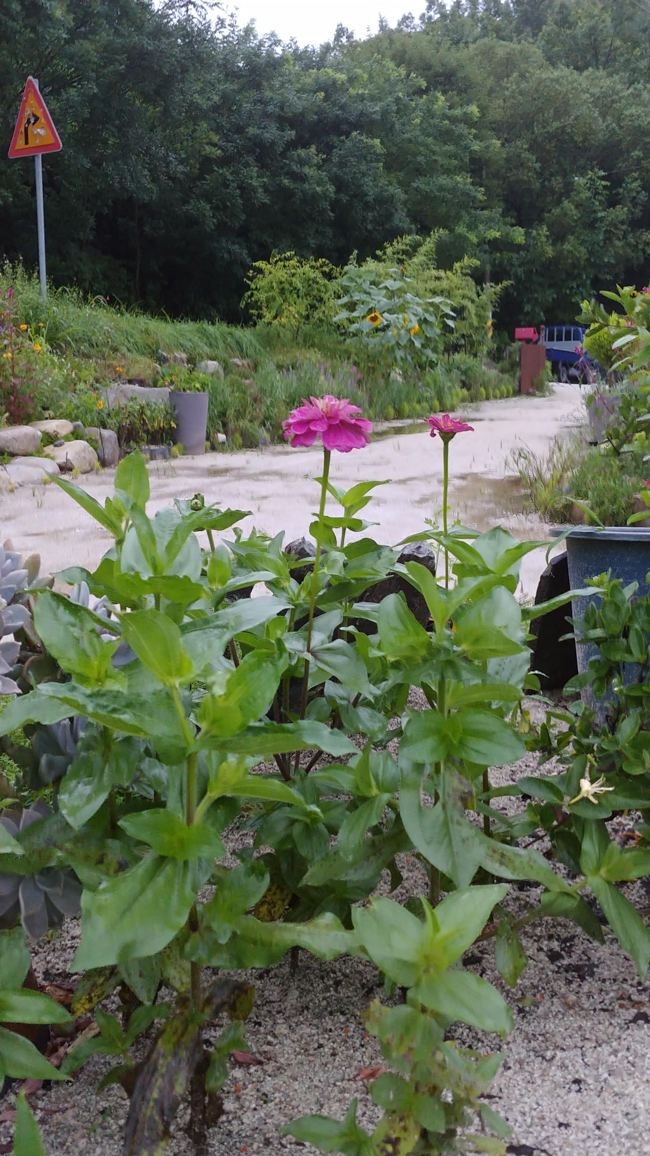 죽풍원에서 올 봄 다양한 종류의 백일홍 씨앗을 구매하여 포트에서 키워 옮겨 심었다.
