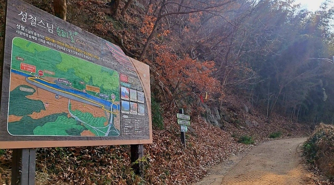 ‘성철스님 순례길’ 코스 안내판이 있다.