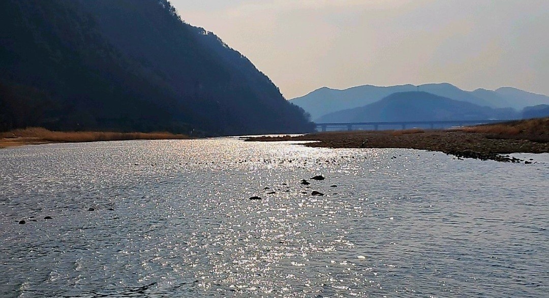 다리 위에서 양 옆으로 보이는 강줄기는,