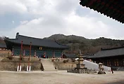 대적광전 앞마당은 석등과 3층 석탑이 조화로움을 보여준다. 대적광전은 화엄의 주존인 비로자나불을 모신 불전으로 처음에는 비로전이라고 하였다가, 1488년 학조 대사가 중창할 때 개명한 것이라고 한다. 바람을 탄 풍경이 뎅그렁거리며 운다. 시끄러울 정도로 울어대지만, 그 소리는 청량하기 그지없다. 속세의 때를 말끔히 씻어주는 느낌이다. 겹겹이 쌓인 기와지붕 사이 아래 축담에 놓인, 수행 정진하는 이의 벗어 던진 하얀 고무신에 오래도록 눈길이 머문다.