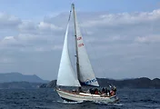 아소만을 얼마나 지났을까, 앞쪽 멀리서 하얀 요트 한 척이 달려온다. 세일링을 즐기는 동호인을 보니 반가운 마음이다. 혹시 우리 일행을 마중 나오는 것일까 생각했는데 맞다. 지세포항을 출항하기 전, 대마도 요트협회에서 마중 나올 것이라는 얘기를 들을 수 있었다.
