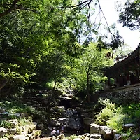 보리암 입구 주차장에는 대형버스를 비롯한 많은 차량들로 넘쳐난다. 매표소까지는 셔틀버스와 승용차를 이용할 수 있다. 단체여행객과 일부 개인여행자는 셔틀버스를 타고 이동하는데, 나는 내 차를 타고 가기로 했다. 숲 속에 난 약 3.2km의 심하게 경사 진 길은 운전하는 데는 큰 불편함이 없지만, 스릴감이 넘친다. 길 양쪽 울창한 숲은 밀림과 같은 분위기를 연출한다.