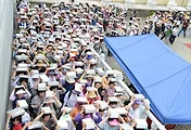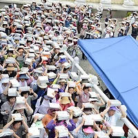 마이크에서 독경소리가 흘러나온다. 어떤 이는 나무그늘에 앉아 제법 편안한 자세로, 어떤 이는 땡볕에 앉아 고행을 참아내며 독경에 빠져있다. 어떤 불자는 손가락으로 책장 글귀를 하나하나 집어가며 따라하고, 어떤 불자는 한 손에 염주를 들고 한 손에 경전을 들고 따라 읽는다. 모두가 열심이고 지극정성이다. 오직 목표는 하나, 부처님 곁으로 가겠다는 일심일 뿐.