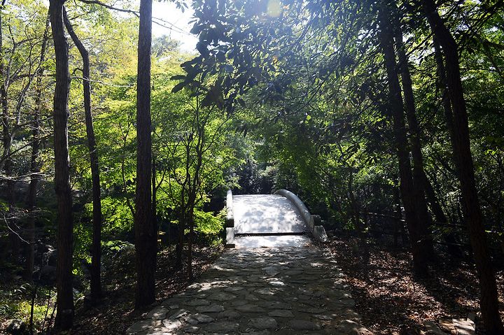 대웅전 옆을 통해 용화교를 건너면 왼쪽으로 미륵전에 오르는 돌계단이 나타납니다.