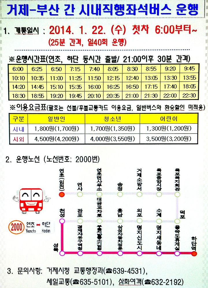 ☞ 거제~부산 시내직행좌석버스 운행 주요내용