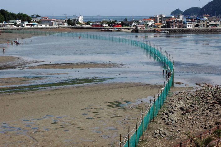 마침 지금 썰물 시간이네요, 이렇게 갯벌이 드러나면 조개도 캐고, 물고기도 잡는 다양한 갯벌체험프로그램이 펼쳐진다고 합니다.