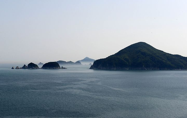 거제시 남부면에 위치한 대소병대도. 가운데 뒤로는 갈매기섬이라 불리는 홍도.