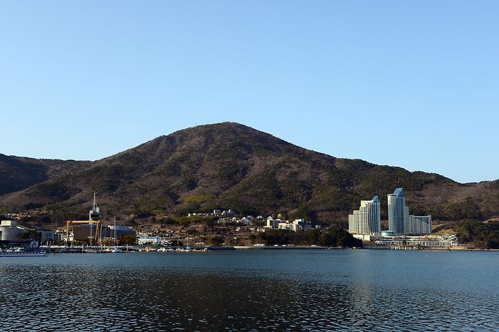 거제시 일운면 소동마을에 위치한 '대명리조트 거제' 모습. 뒤로는 거제 11대 명산 중 하나인 옥녀봉.
