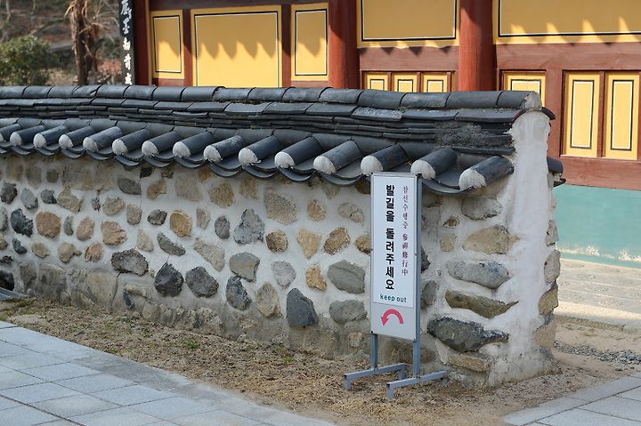 통도사에서. 참선수행 중, 발길을 돌려 주세요.