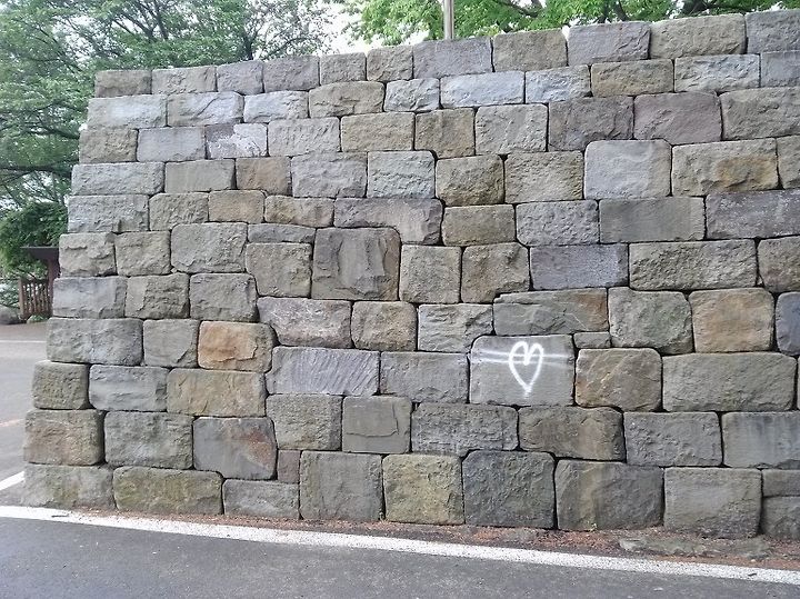 새로 만든 성벽 큰 바위 표면에 낙서를 한 모습이 안타깝다.