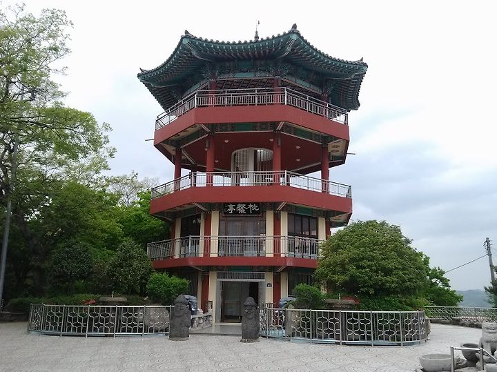 사천읍성에 있는 4층 규모 팔각정인 '침오정'에 오르면 사방으로 읍내가 한 눈에 들어온다.