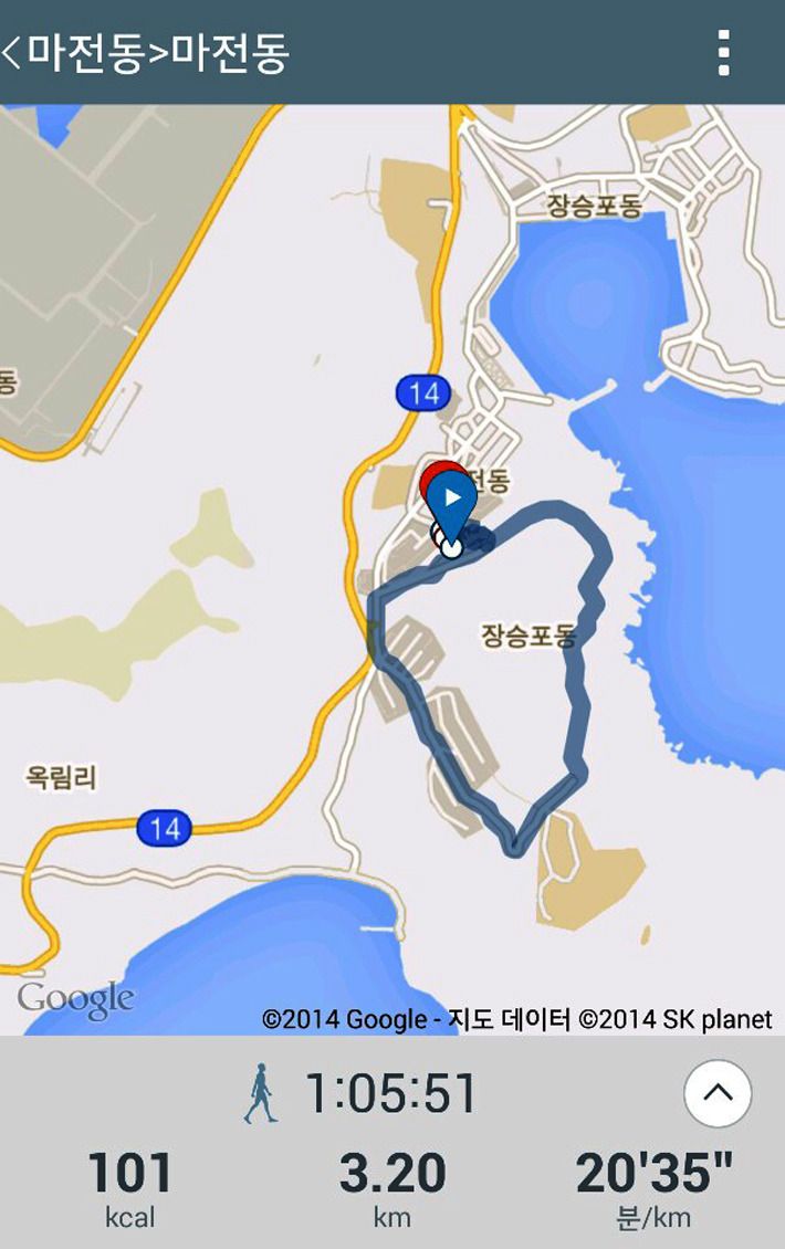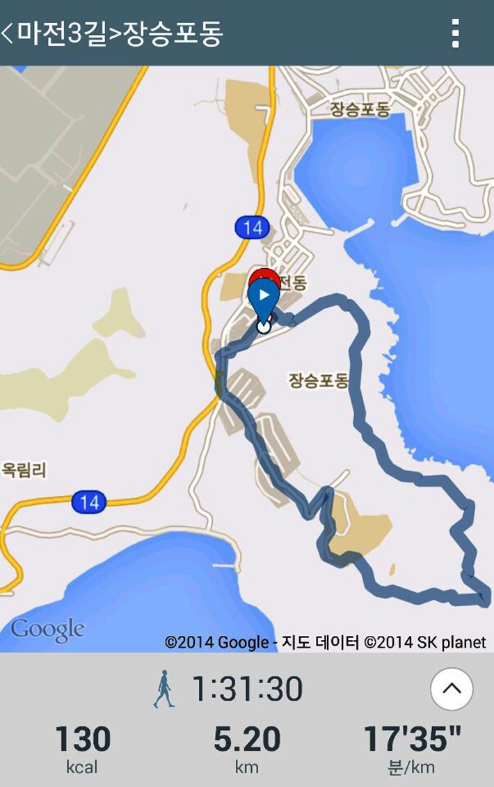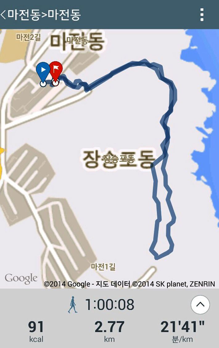 운동코스는 구글 위성지도로 나타나 지도로도 볼 수 있습니다.