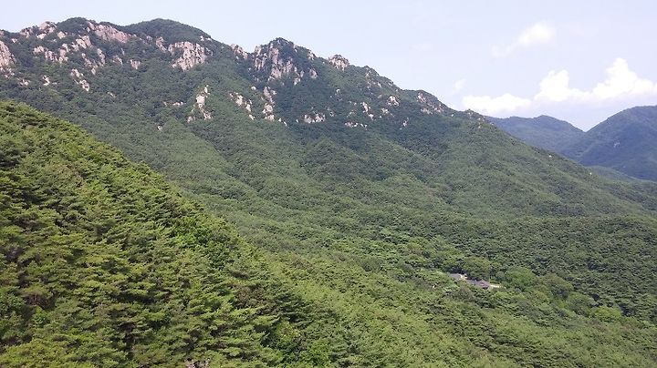 2014. 7. 19. 경남 창녕군 관룡사 뒤쪽에 자리한 용선대에 올라 본 관룡사(오른쪽 아래) 풍경.