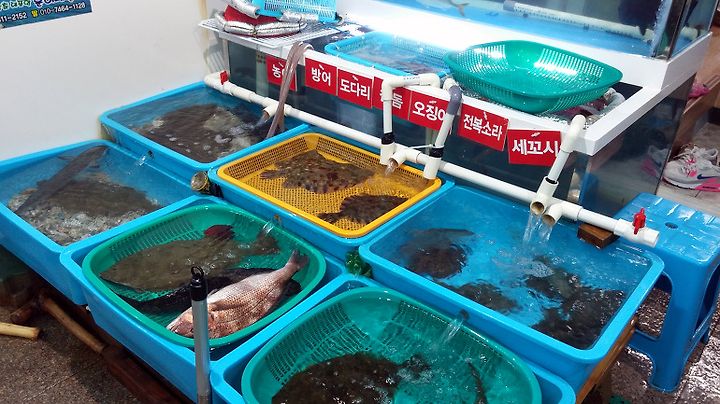 휴가철이라 워낙 많은 사람들이 대포항 관광 수산시장을 찾은 탓인지, 잠시 밖에서 대기하다 식당 안으로 들어갔습니다.