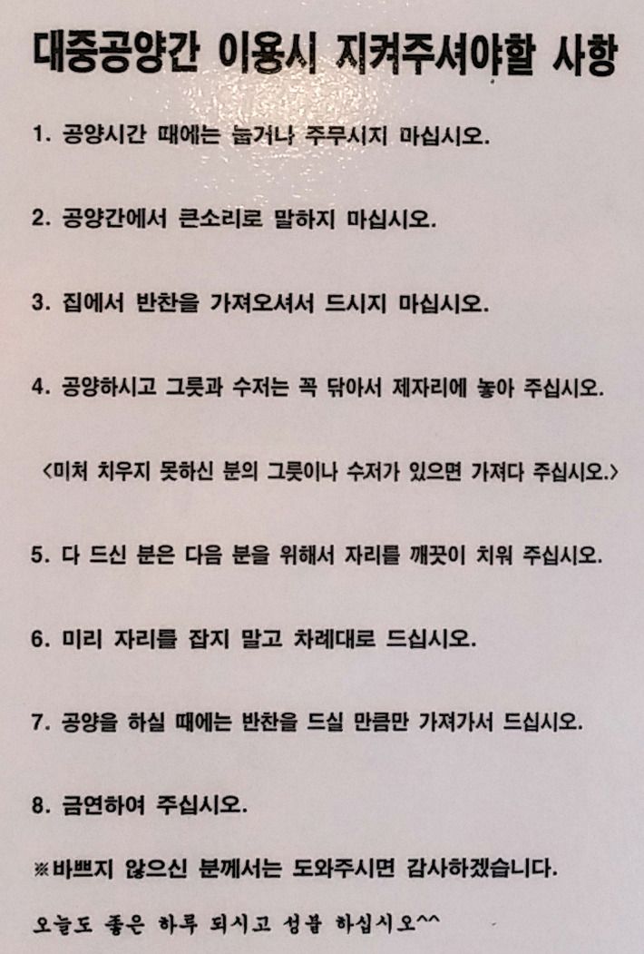 . 공양 종소리나 목탁 소리 즉시 공양간으로 간다.