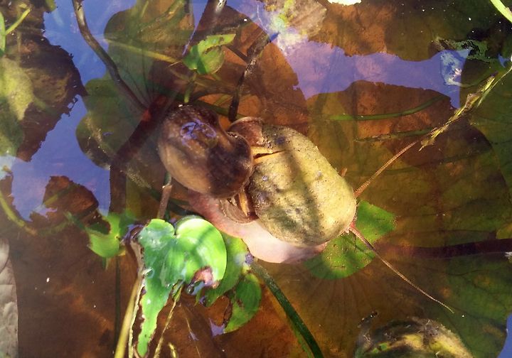 논둑을 지나가다 논우렁이의 사랑 장면을 포착했습니다.