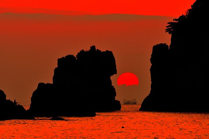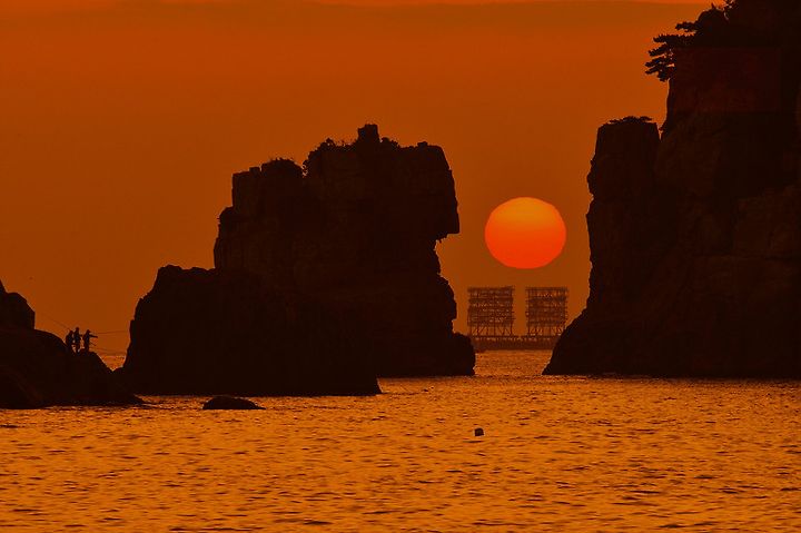 본섬과 사자바위 사이에서 떠오르는 일출이 유명하기 때문입니다.