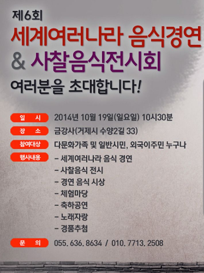 [거제도여행코스] 제6회 세계 여러 나라 음식 경연 및 사찰음식 전시회, 거제 금강사에서/거제도 가볼만한 곳