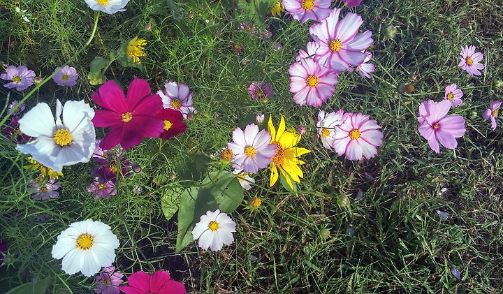 여러 가지 화려한 색깔로 피어난 코스모스는 바람이 불 땐 더욱 아름다움을 발휘합니다.
