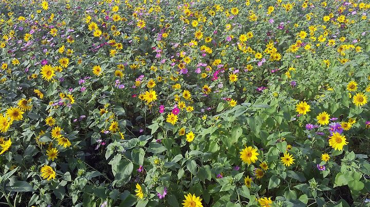늦게 파종했던 해바라기는 이제 피어나기 시작했습니다.