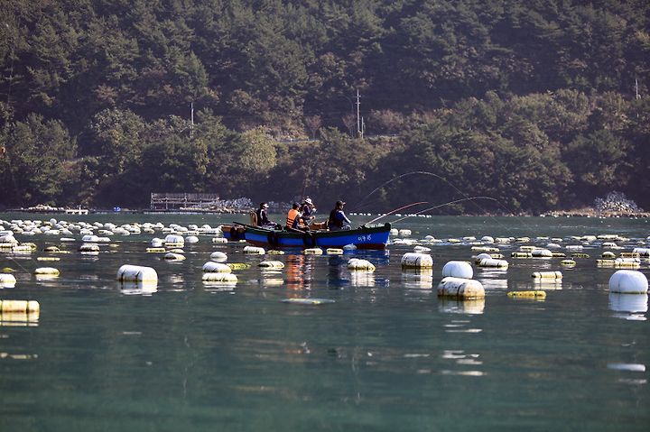 낚시장소는 어구마을 양식장 사이 수역에서 할 수 있으며, 노를 젓고 이동할 수도 있습니다.