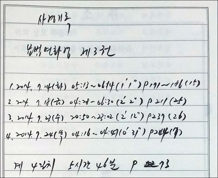 법화경을 사경한 날수로는 24일 동안 썼으며, 총 시간은 48시간 37분이 소요되었습니다.