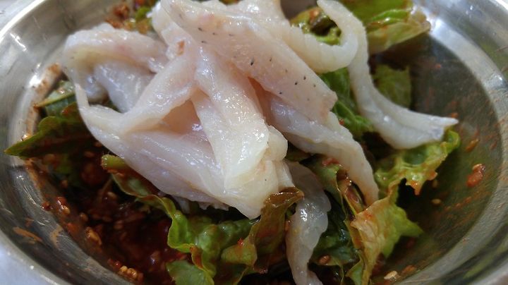 가오리는 씹는 맛이 쫄깃하여 입안에 회 맛이 오래 남는 것이 특징입니다.