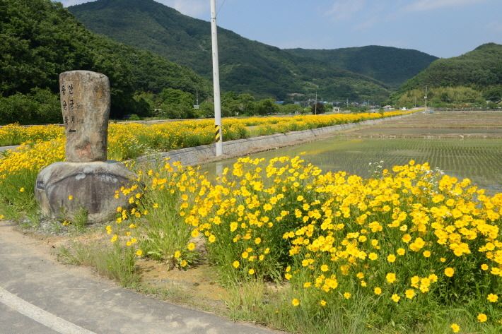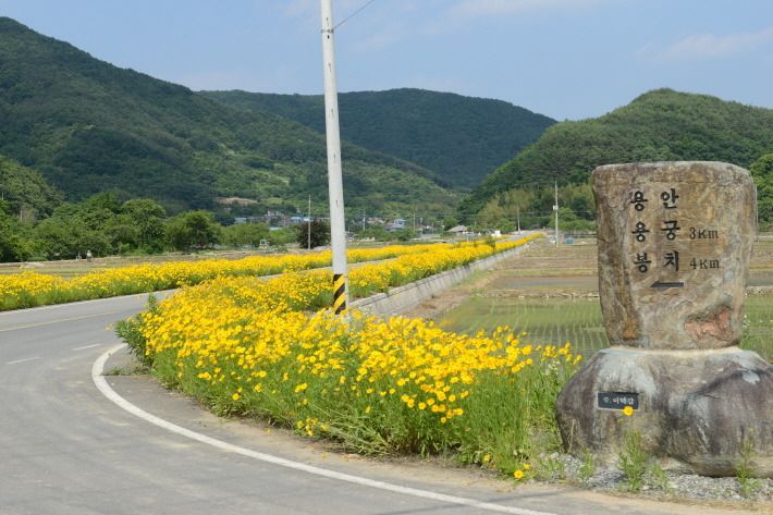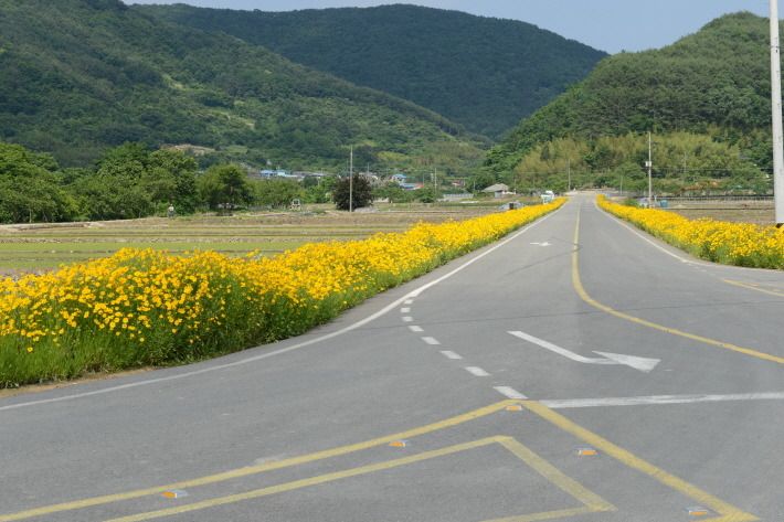 길가에는 황금색으로 물들인 금계국이 여행자의 발길을 붙잡습니다.