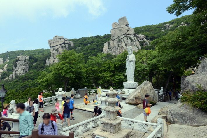 보리암 매표소에서 약 15분을 걷는 길이 무척이나 편하다. 눈앞으로 보이는 기암괴석은 산 속에 뿌리를 내린 듯 하늘 높이 솟아 위용을 자랑한다. 그간 금산을 몇 번이나 올랐지만, 남해바다는 제 모습을 보여주지 않았다. 무슨 말 못할 고민이 있는지, 아니면 무슨 신비스러운 비밀을 안고 있는지, 남해바다는 안개 속에 자신을 숨겨 놓았다. 언제쯤 안개가 걷힌 신비한 남해바다를 볼 수 있을까. 그때까지 기다려 보리라.