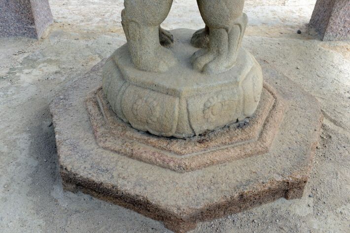 널따란 8각의 바닥 돌 위에 올려진 사자 조각은 두 마리가 서로 가슴을 맞대고 뒷발로 아래 돌을 디디고 서서 앞발과 주둥이로는 윗돌을 받치고 있는 모습이다. 아랫돌과 윗돌에는 각각 연꽃을 새겨 두었는데, 윗돌에 두 줄로 돌려진 연꽃무늬는 예스러운 멋을 풍기며, 현재 남아있는 사자조각들 가운데 가장 뛰어나 머리의 갈기, 다리와 몸의 근육까지도 사실적으로 표현하였다.
