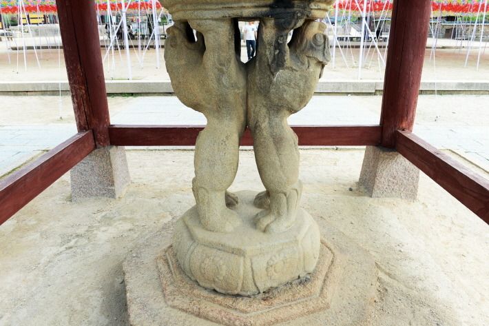 석등을 받치고 있는 사자의 꼬리가 일부 잘려나가 안타깝기만 합니다.