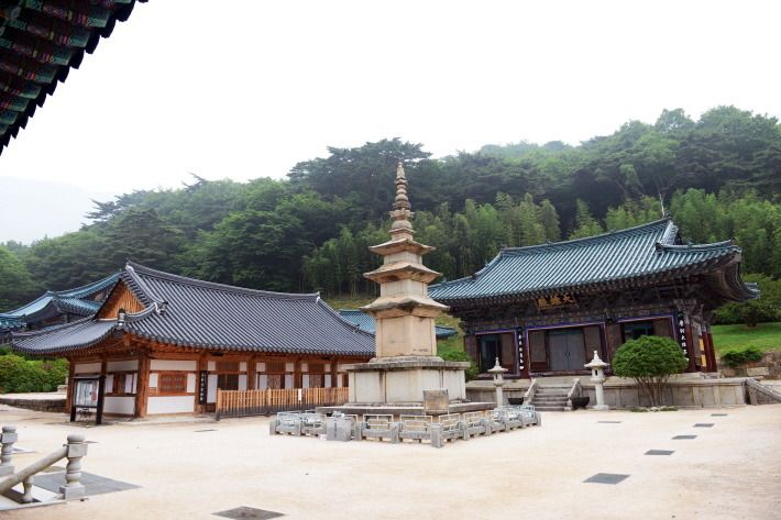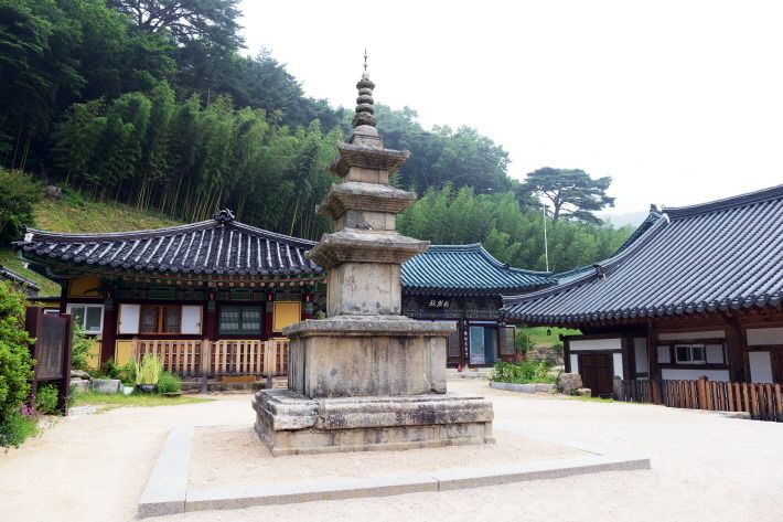 조용한 절간은 침묵이 가득하다. 한 발자국 발걸음을 옮기는 것도 신경이 쓰인다. 대웅전을 중심으로 마당엔 '삼층석가사리탑'이 섰다. 이 탑은 신라 흥덕왕 16년 도의국사가 호국의 염원을 빌며 세운 15층 대탑으로 임진왜란 때 손실됐다. 1973년 삼층탑으로 복원하고 스리랑카 사타티싸 스님이 부처님의 진신사리를 이 탑 안에 봉안했다고 전해진다. 탑을 중심으로 북쪽에는 대웅전이, 동서로는 강선당과 서래각(종무소)이 절 마당에 안정적으로 배치돼 있다.