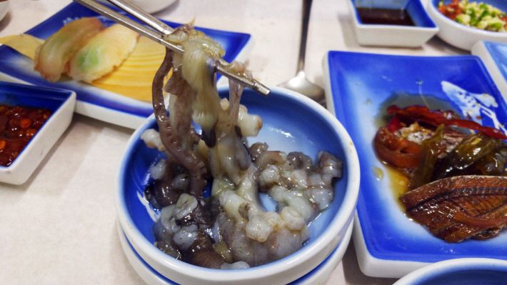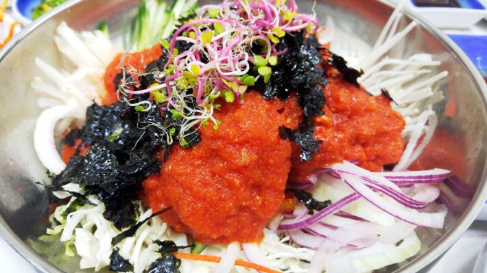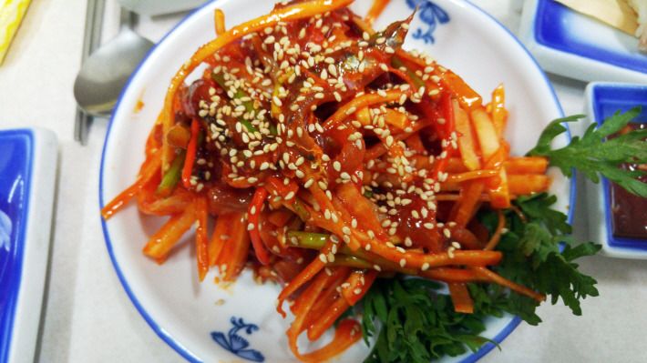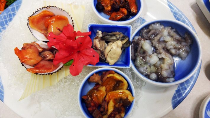 곁가지로 나오는 해산물도 멍게, 소라, 낙지, 굴 등 다양합니다.