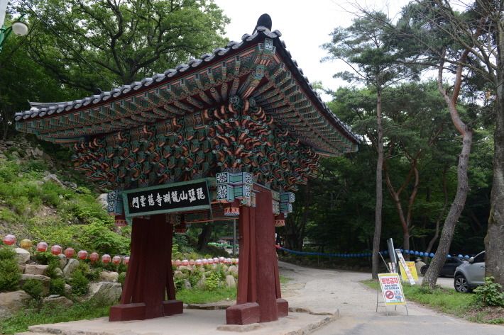 울창한 숲과 계곡에 터를 잡은 연못, '용연지'를 지나면 나타나는 일주문이 특별나다. 보편적으로 일주문에 거는 현판은 절이 자리한 주산 이름과 절 이름을 병기하는데, 용연사는 '비슬산용연사자운문'이라 썼다. '자운'이란, '은혜가 구름처럼 널리 미침'이란 뜻인데, 이 절을 찾는 모든 사람들에게도 은혜가 내렸으면 하는 바람을 담지 않았을까. 다포식 팔작지붕을 한 이 문은 지붕과 공포가 기둥에 비해 엄청 크다.