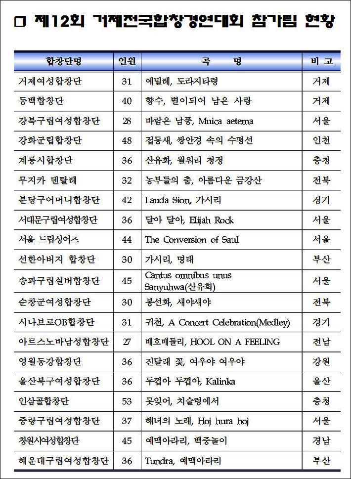 올해로 열두 번째 맞이하는 거제전국합창경연대회.