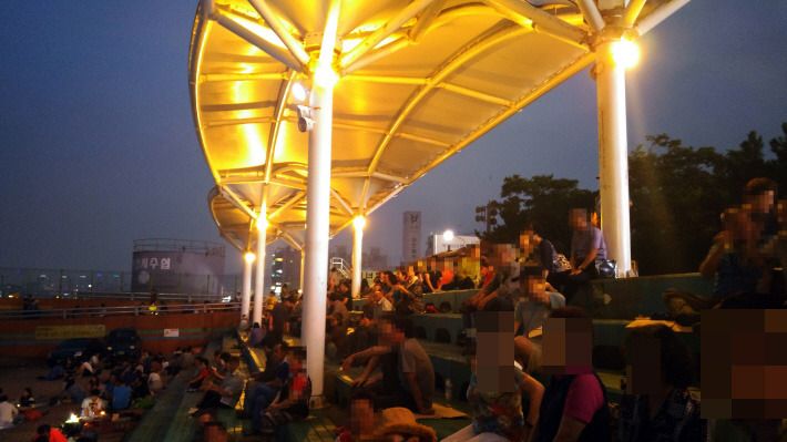 삼삼오오 모여 한가롭게 여유를 즐기는 사람들.