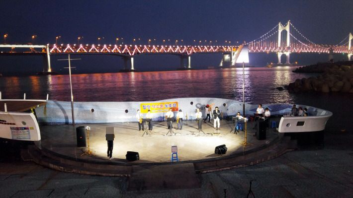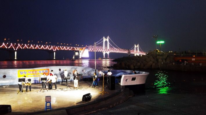 [부산여행] 부산 광안리 수변공원 광안대교 야경과 힐링 색소폰 동호회 공연/부산여행코스/부산 가볼만한 곳/부산여행코스추천/광안리 수변공원 회센터/민락 수변공원