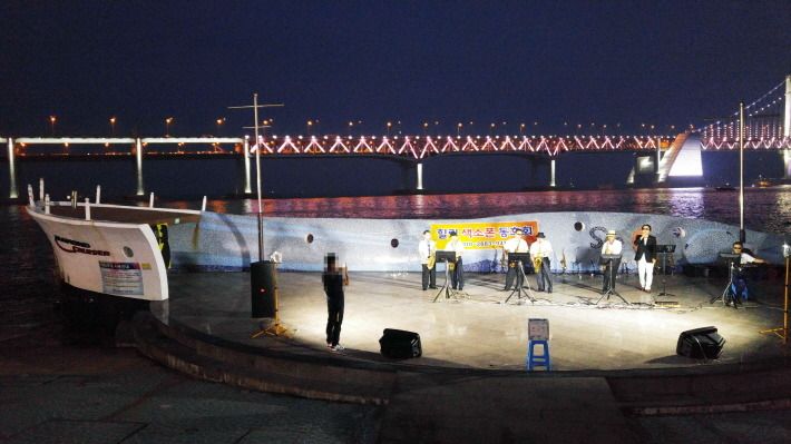 배 모양의 야외무대에는 색소폰 동호회의 야외공연이 한창이었습니다.