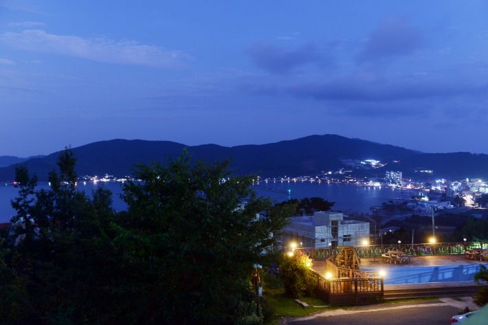 거제 일운면 소동리에 자리한 '웰빙머드펜션' 야경.