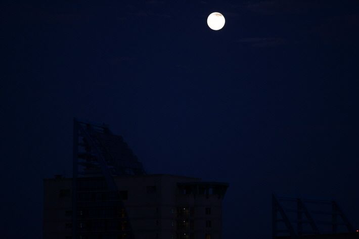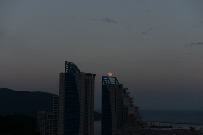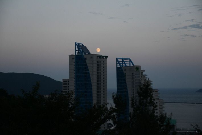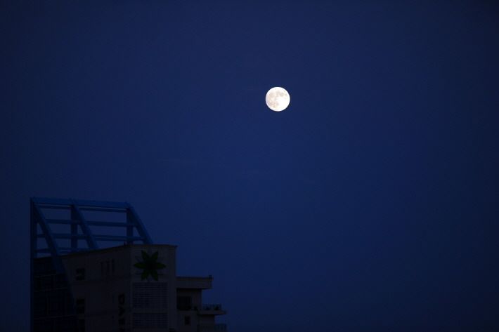 거제도 웰빙머드펜션에서 본 보름달 풍경입니다.